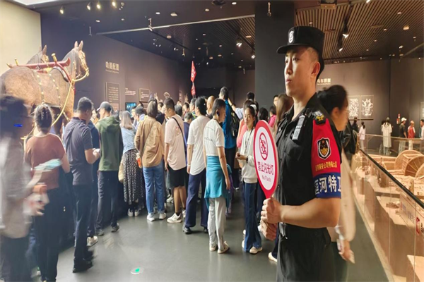 國(guó)慶中秋“雙節(jié)”期間,殷墟博物館、中國(guó)文字博物館、漢字公園、南大街等多個(gè)明星旅游點(diǎn)迎來客流高峰,博物館系統(tǒng)日接待量持續(xù)逼近60000人次限流上限。連續(xù)降雨天氣給安保服務(wù)工作帶來雙重考驗(yàn)。特保大隊(duì)以“護(hù)航文物安全、保障游客舒心”為核心,憑借全體隊(duì)員的高度責(zé)任感和出色表現(xiàn),實(shí)現(xiàn)了“零文物安全事故、零游客安全意外”的目標(biāo),得到客戶單位和廣大游客的高度贊譽(yù)。
