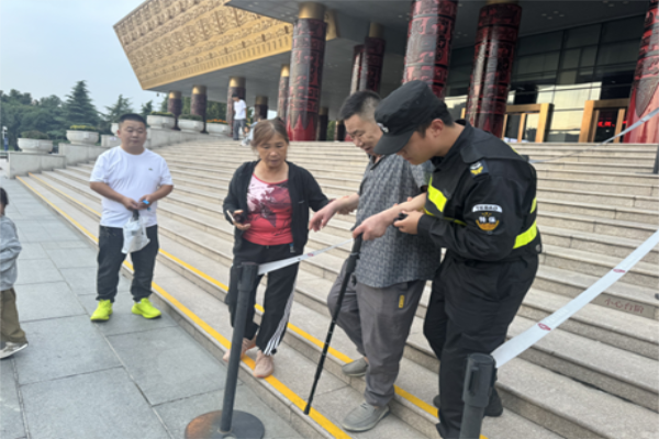 節(jié)日期間,特保大隊(duì)實(shí)行24小時(shí)輪班值守,全體隊(duì)員全情投入安保工作。一是嚴(yán)把入口關(guān)。安檢隊(duì)員嚴(yán)守各場(chǎng)館入口安檢關(guān)口,細(xì)致排查易燃易爆、管制刀具等違禁物品。僅殷墟博物館、中國(guó)文字博物館、漢字公園3處,日均完成超4萬余人次安檢,精準(zhǔn)攔截多起違禁品,筑牢“危險(xiǎn)物品不入園”的堅(jiān)實(shí)防線。二是強(qiáng)化內(nèi)部巡邏。館內(nèi)隊(duì)員加密巡邏頻次,既重點(diǎn)盯防文物展柜等安全要害,又聚焦客流易聚集區(qū)域。實(shí)時(shí)疏導(dǎo)擁擠人群,有效防范各類安全風(fēng)險(xiǎn)。三是維護(hù)現(xiàn)場(chǎng)秩序。游客熱點(diǎn)區(qū)域,隊(duì)員遇人員飽和時(shí),及時(shí)引導(dǎo)游客分批次有序游覽,保障良好秩序。四是提供暖心幫助。特保隊(duì)員專注引導(dǎo)行人安全通行。遇到老年游客或攜帶重物的游客,主動(dòng)上前攙扶、協(xié)助搬運(yùn)行李,以貼心舉措傳遞安保溫度。 好人好事不斷,傳遞服務(wù)溫情。