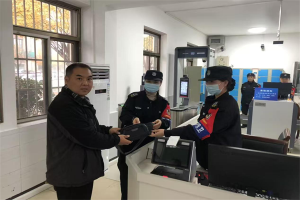 11月7日,特保大隊派駐中級人民法院中隊安檢隊員張芳、劉清,在日常勤務(wù)工作中于安檢區(qū)域撿到一個黑色腰包。經(jīng)檢查,二人發(fā)現(xiàn)包內(nèi)裝有11000元現(xiàn)金、多張銀行卡及身份證等重要物品。