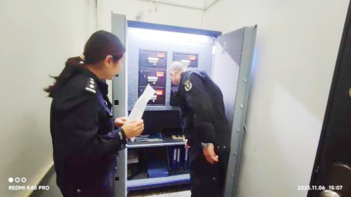 11月6日下午,安陽市公安局龍安分局民警王靜靜對守押十二大隊相州農商銀行中隊進行槍支管理工作專項檢查。